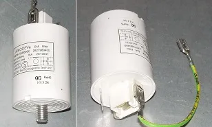 Выполняем замену фильтра радиопомех. Рассматриваемое устройство становится причиной отсутствия энергоснабжения в помещении в случае подключения стиральной машины к энергосети. Основной функцией фильтра является стабилизация напряжения. Когда устройство не работает, начать стирку невозможно.