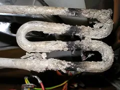 Рассматриваемая ситуация приводит к неблагоприятному исходу. В случае крайне негативного исхода событий машина может загореться, поэтому рекомендуется не ждать печальных событий, а выполнить замену ТЭНа. Это мероприятие не приведет к излишним затратам. В нашем сервисном центре всегда имеются нагревательные элементы для стиральных машин любого года выпуска.